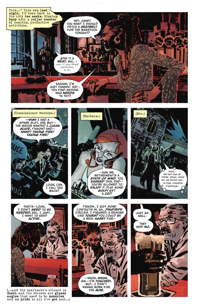 There’s a back-up featuring Jim Gordon, back in Gotham after his quest to find the Joker. The former police commissioner is at a bit of a loss