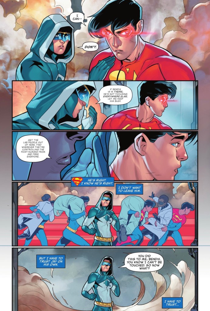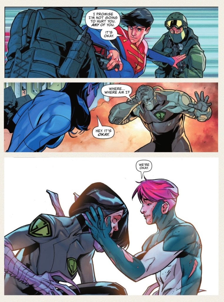 The issue ends with Bendix gone, his victims ‘okay’ in a body horror way, Lex off the hook and Jon snogging Jay, just in case anyone has forgotten that this is Bisexual Superman. Jon and pals invading a sovereign nation will likely be waved away given they were mounting a rescue.