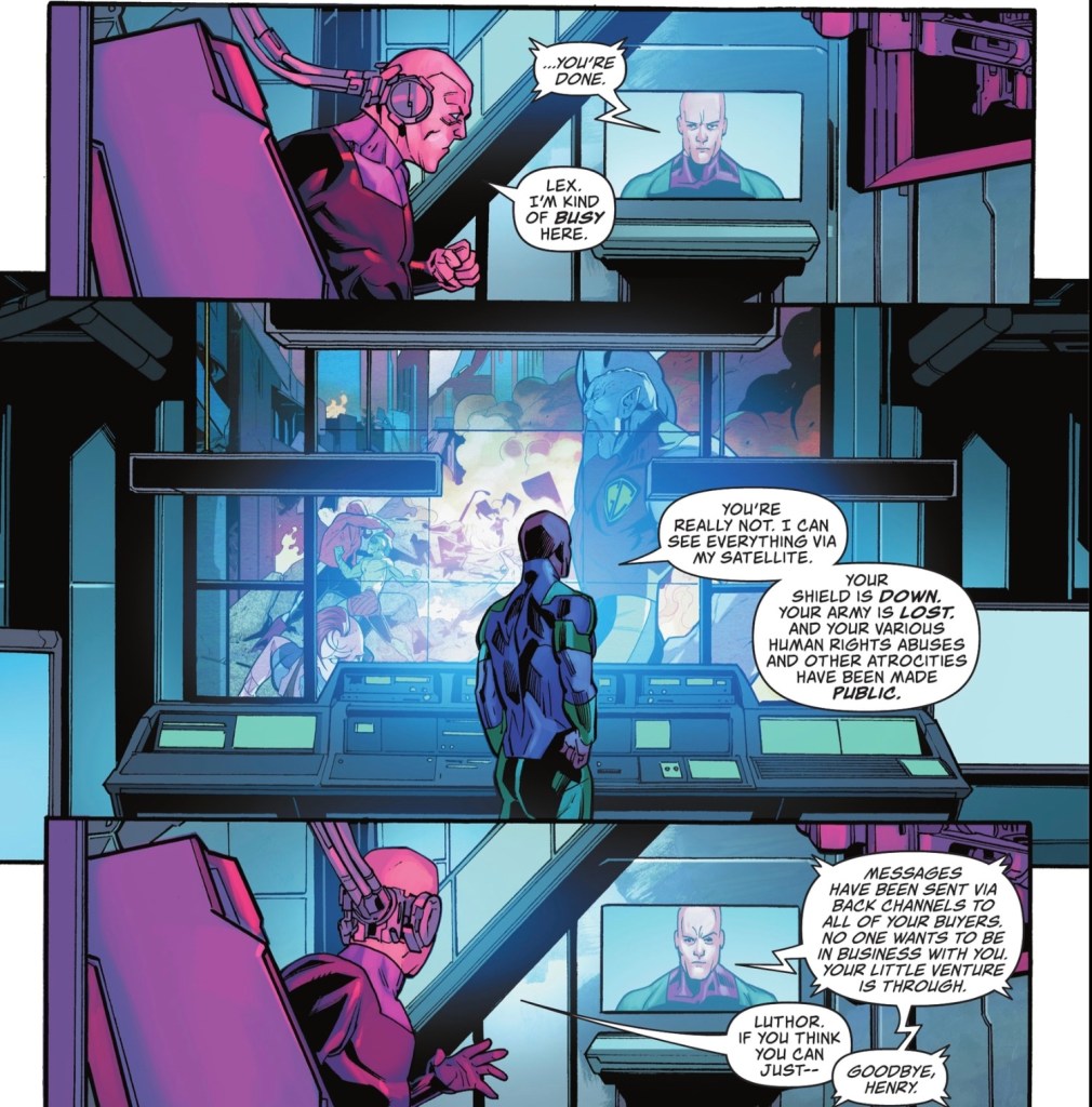 Meanwhile, Lex Luthor, who had been working with Bendix behind the scenes, decides to cut his losses.