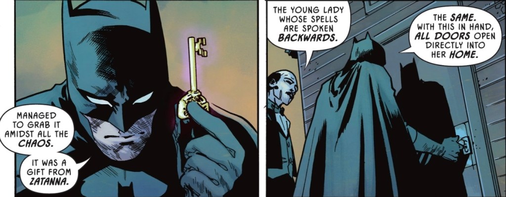 Well, this was quite the read. But with Mark Waid writing, I should have expected that. The storyline immediately intrigues, with the return of the underused Tim Hunter and Jakeem Thunder a big bonus – I suspect the Devil Nezha will come to regret taking away their agency. The big takeaway is that Alfred is back from the dead. Bruce quickly accepts him and so do I. A slaughtered and cremated butler standing in the rain, ready for a cup of Oolong tea? I’ll take it. In the DC Universe ‘a wizard did it’ always works. Waid demonstrates his mastery of characterisation, nailing the relationship between Bruce and Damian as he weaves a tale that begins with one intense moment and just gets bigger and bigger. There are callbacks to old DC stories in the magical objects offered to Damian by his co-sponsor, the Devil Nezha…