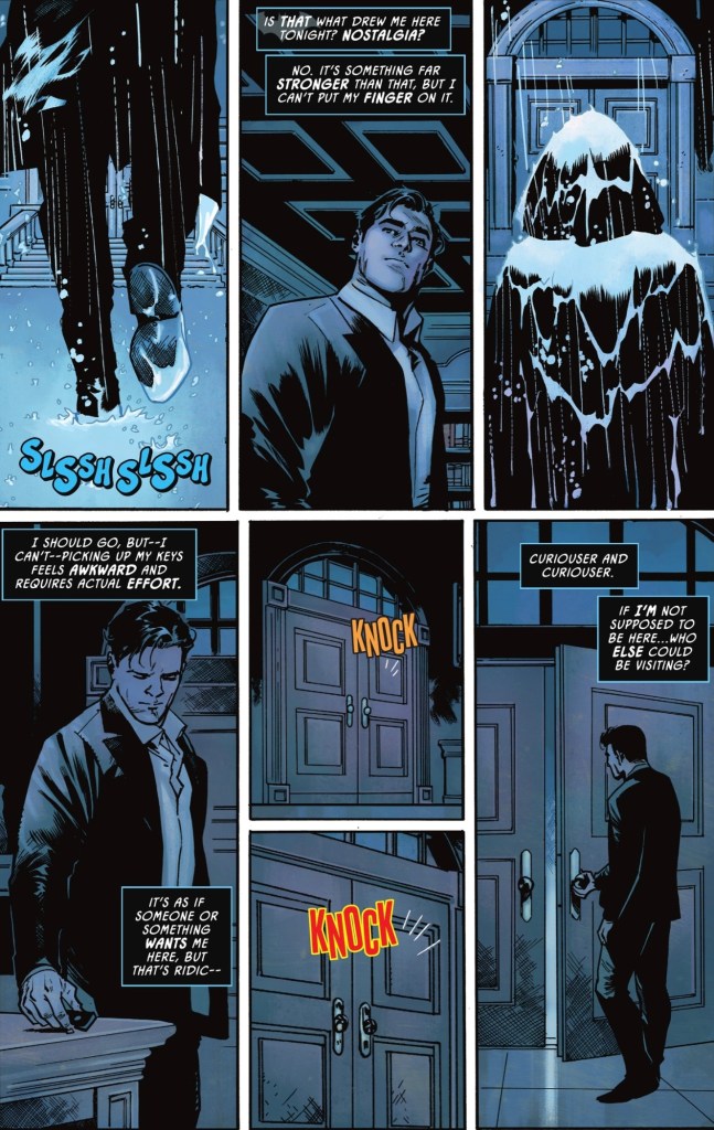 It is a dark and stormy night. Someone taps at the door of stately Wayne Manor. Bruce Wayne, currently living in Gotham but having felt a pullback to his ancestral home, answers.