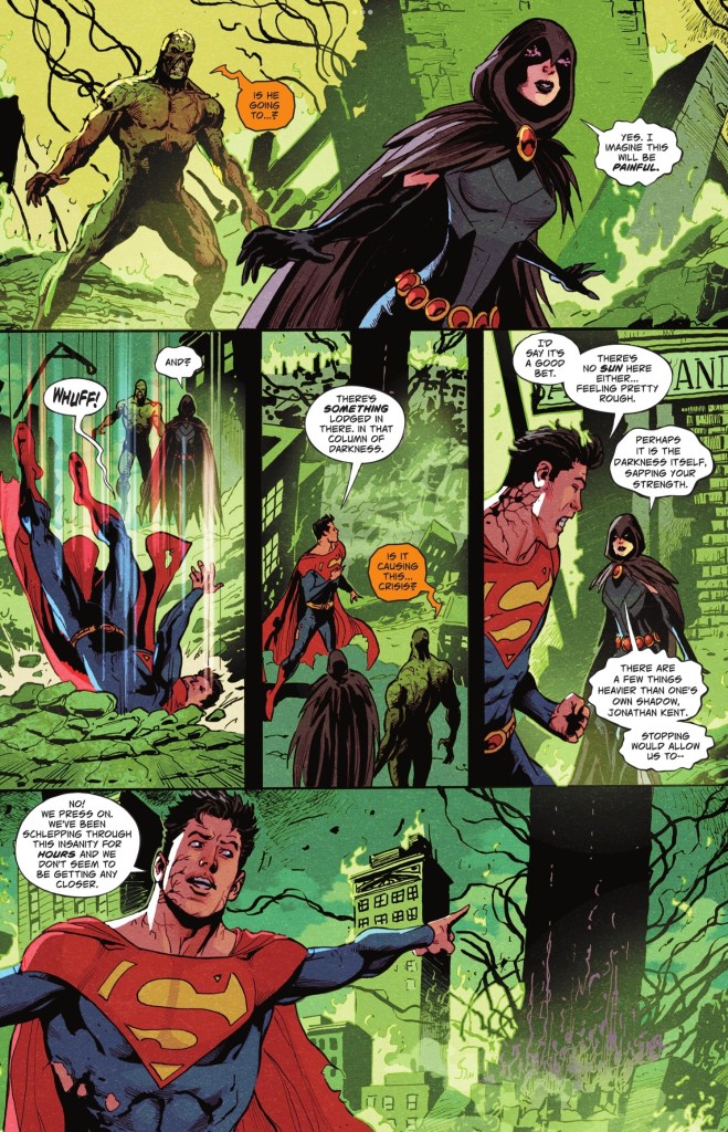 I enjoyed this double-sized special a lot. Where the mother book, Dark Crisis on Infinite Earths, is fun, it’s unfocused to the extent that it’s sometimes tough to say what the story is. The Deadly Green, though, has a clear concept and throughline – go into the dark and find out how it’s linked to the chaos in the outside world. Once there, each character gets a little play from writers Ram V, Alex Paknadel and Dan Watters, with Raven especially benefiting – this is the best she’s been portrayed in years. And Jon is far more interesting and proactive than he’s been in his own title. There’s also good work done with Jade, Obsidian and Alan, outside the ring.