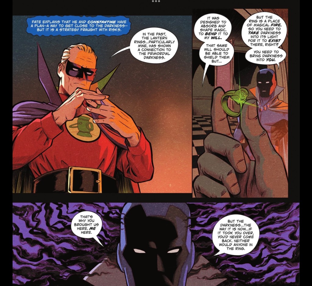 As for Constantine, his back-and-forth with the antagonist is intelligent and thought provoking, echoing the themes of the classic Swamp Thing #50, from which the entire Dark Crisis story derives.