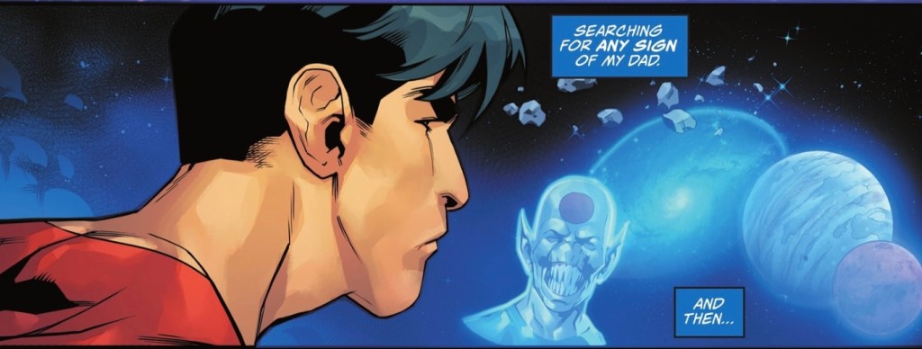 He begins by scanning the solar system for signs of his Dad who, in this story, hasn’t yet come back from Warworld.
