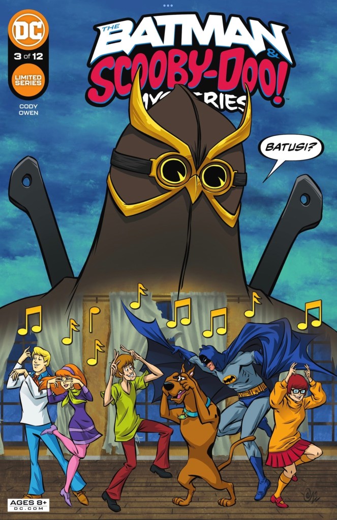 Well, it looks like Uncle Joseph wasn’t whistling Dixie with his talk of Talons… can Scooby, Shaggy, Freddy, Velma and Daphne, and Bruce Wayne in his other identity, defeat the beaky bully? Or is that Batusi I mentioned a depressing dance of defeat following The Night of the Owlful Party?