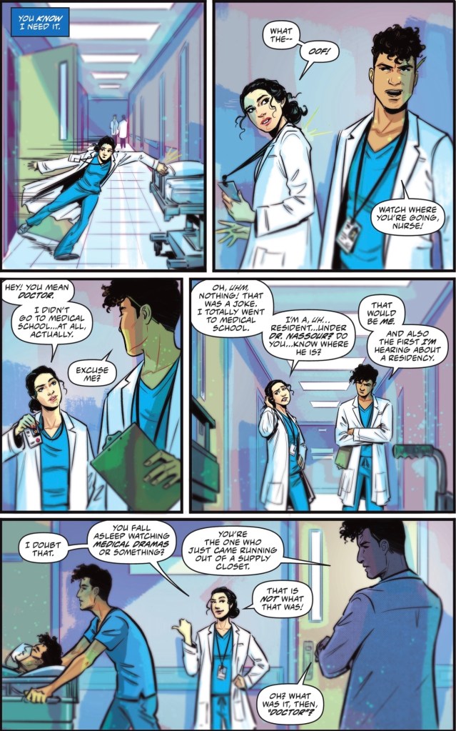 Khalid’s medical student background was a big part of his superb shortlived series, but DC has ignored it since he joined Justice League Dark; its great to see his status as an actual doctor revived. Complementing Maine’s smart story is the appealing art of Skylar Patridge, which nails the everyday and the extraordinary alike. A nice subtle point is that everyone else in the dream is Khalid. My favourite aspect is the look of Supergirl, with Patridge and colourist Nick Filardi making her hair look amazing.