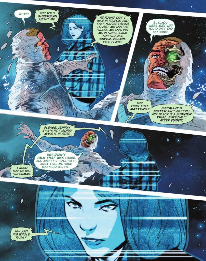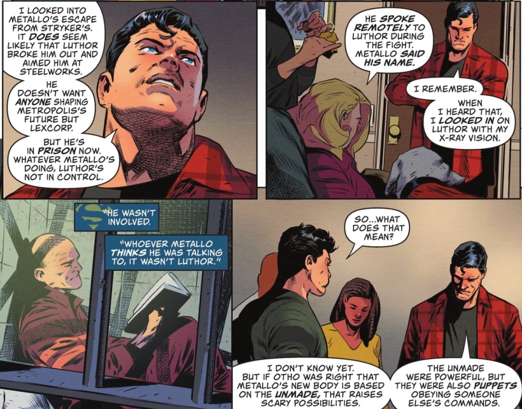 A surprising moment sees Superman argue that Lex isn’t behind the return of Metallo,