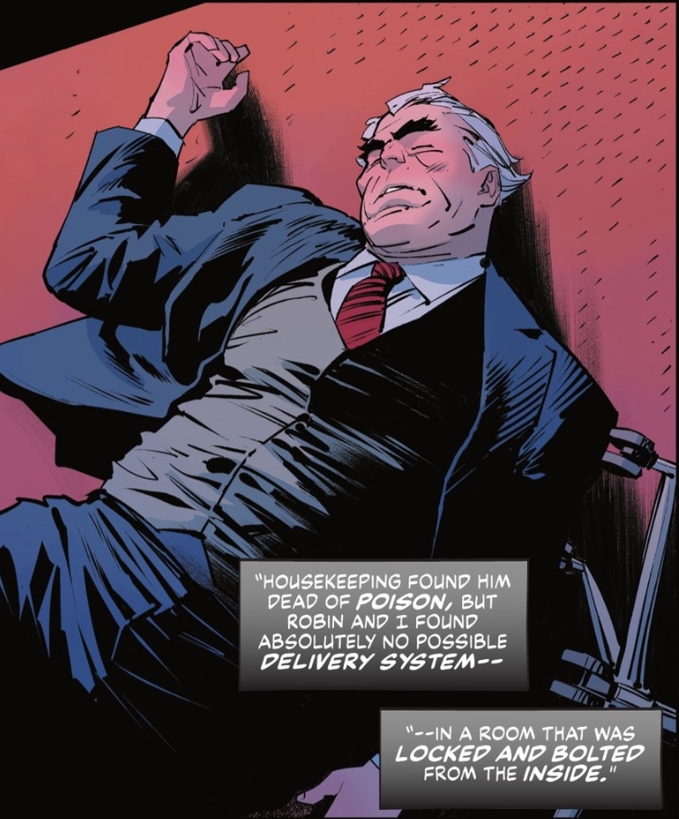 4. Now, you’ve got me wondering what the cliffhanger is – good work! The only thing I can come up with based on your clue is that Bruce Wayne appears to have committed the dirty deed (murder, that is – not sex. *Carry On music plays in background*). And it can’t be that!