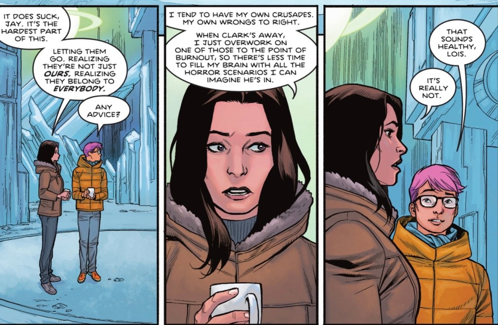 You liked this more than me. But interestingly, as I read your review the parts I liked, mostly the character moments (Lois and Jay, Lois and Jon, Lois and Reddy, Reddy and Jon). Can it be I like the issue but don’t like the comic?