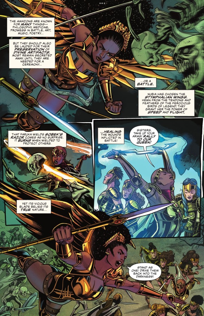 This issue’s second, connected story has new Amazon queen Nubia and friends also fighting Hera’s horrors. They’re doing their best with the tools they have…