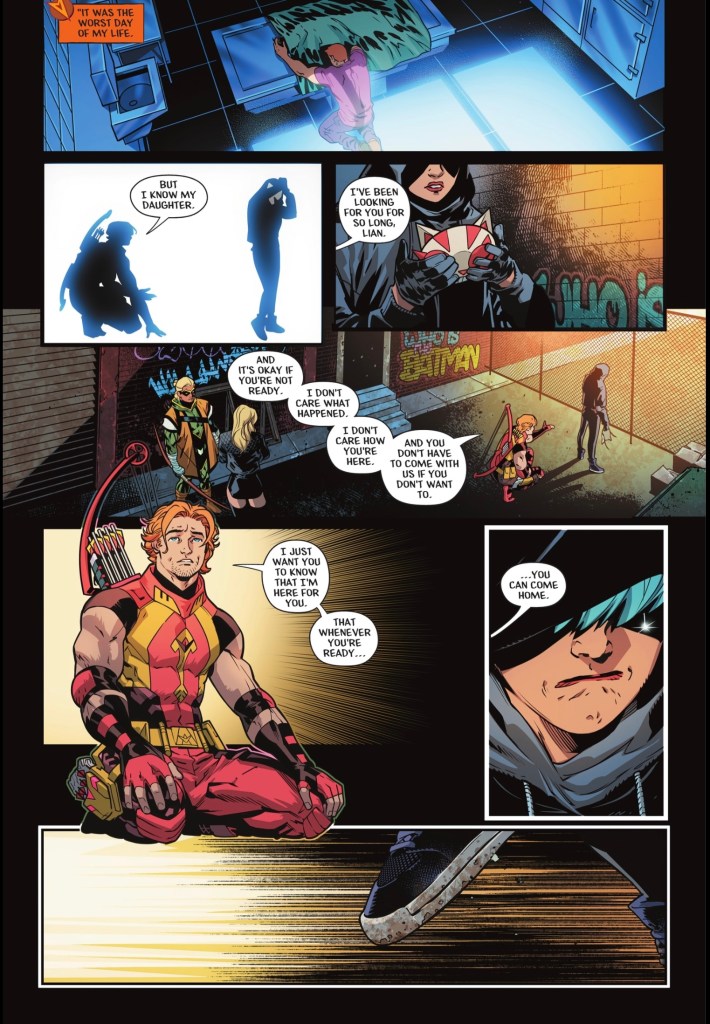 The scene between Roy and Lian is tenderly written. He’s been characterised as more emotionally intelligent than Oliver since the beginning of the Bronze Age, and he’s still a credit to, well, himself.