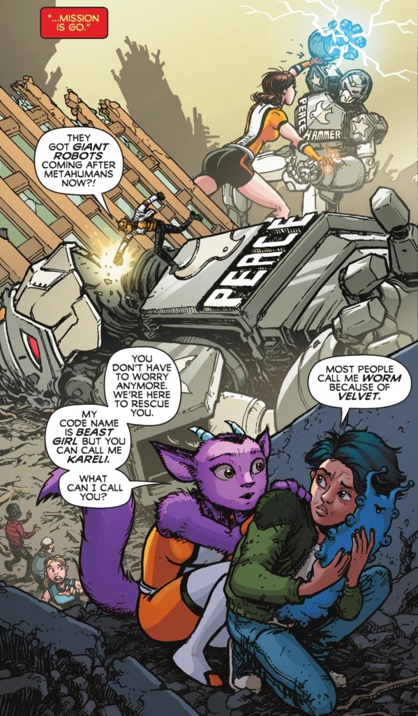 The Day in the Life aspect sees us introduced to DP base The Shelter as new character Beast Girl gives the even newer Worm the grand tour. They met on the team’s latest mission to rescue people with runaway metagenes from those who would exploit them.