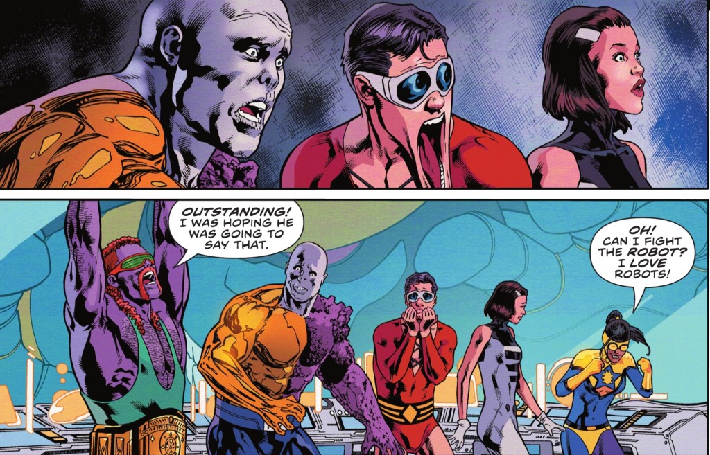 And with Mr Terrific, Hourman, Kid Flash, Metamorpho, Phantom Girl, Plastic Man, Goldbug and, yes, intergalactic wrestler Omega Bam Man by his side, the odds are good.