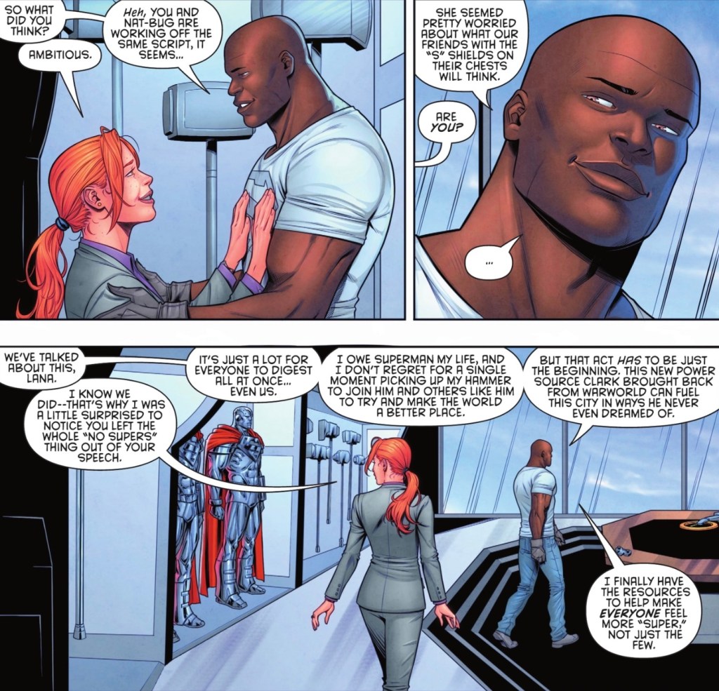 Steel and Lana! They were a couple years ago in the underrated Superwoman series but I never expected that to be mentioned again. But here they are, stronger together than ever. And I love it, so far as a couple of 2D drawings can, they have real chemistry.