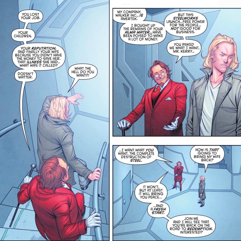 There’s one more important player this issue, one Charles Walker III. He wants to work with Kerry who, it turns out, used to work for the arms manufacturer Steel designed for before its shady ways led him to walk away.