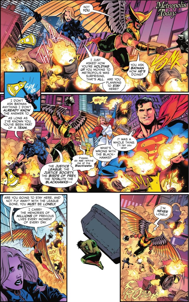 But there’s no Justice League right now for… reasons. I dunno. I dunno why Superman is with a gang of his pals when currently Metropolis is home to more than half a dozen members of his Super Family. I dunno why Kendra has moved to Metropolis, writer Jadzia Axelrod doesn’t give us the background.