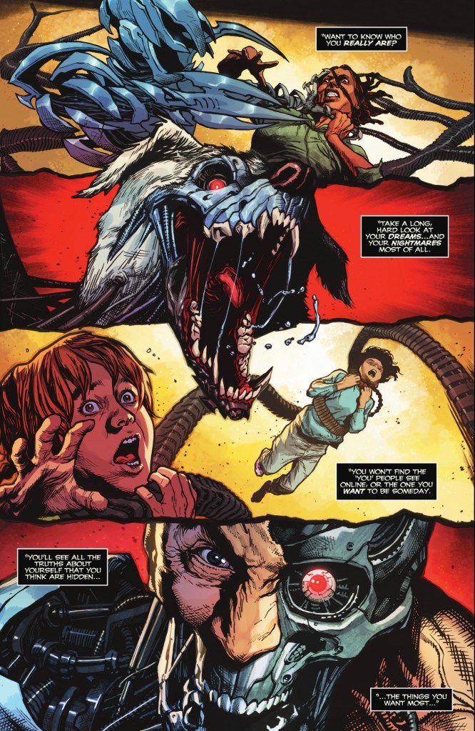 And then there’s the artwork of Mico Suayan and Fico Ossio, which explodes off the page. Suayan draws the first six pages and the final two (which has a fun Wizard of Oz moment), while Ossio handles the rest. In a dreamworld there’s a certain leeway in terms of storytelling, room for impressionism, but both artists keep things linear and it works for the instalment. There’s power in the individual images but they hang together as a coherent piece, giving us some of the strongest Knight Terrors imagery I’ve seen. There’s one splash in particular that is truly awful, in a very good way.