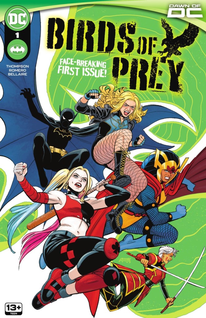 But the heck with it, overall I loved this Ben Abernathy-edited issue, beginning with Romero and Bellaire’s delightfully jolly cover image – I was tickled by the strapline calling back to 1998’s Birds of Prey #1, which was ‘Breaking hearts and faces monthly’. On the basis of this debut, I hope this new version shows up monthly for a good while.