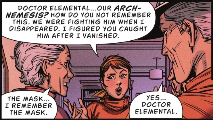 I’m intrigued as to how much of a threat Doctor Elemental will be, given he’s likely dead by now if he’s been hiding away since the Sixties. And whatever eeeeeeevil plan he had can’t have been that impressive as Keystone is still hale and heart today. I can only surmise that he’ll be time travelling front then to now. We’ll see.
