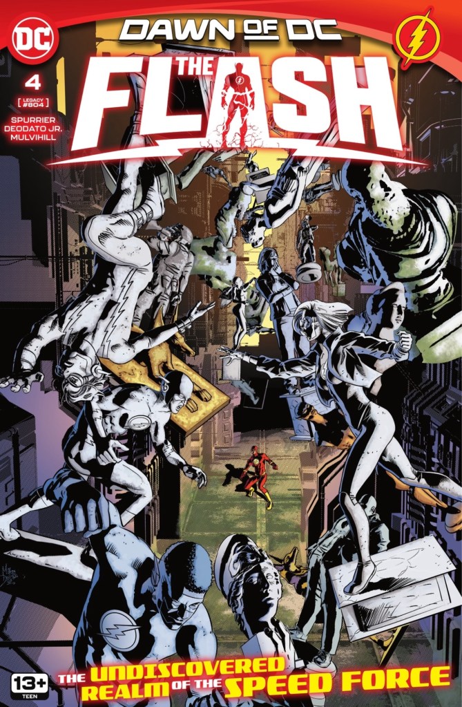 Deodato and Mulvihill’s cover illustration is fantastic, but the triangular composition leads the eye from bottom to top, ending at the little Flash man in the new logo… that has to go.