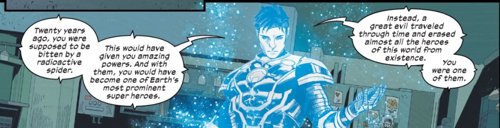 4. This sounds like a great premise. A new Peter who’s older and more settled than I would want mainstream Peter to be, starting out on a new adventure. How many superhero stories start out with “middle-aged (or nearly) dad gets powers?” What kind of “great responsibility” will Peter feel when he already has a great responsibility to his family?