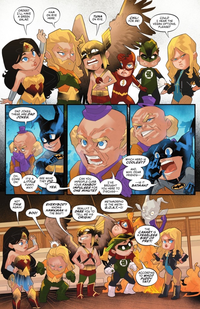 First we have Mr Mxyzptlk, Bat-Mite and their Just-Us League of Imps meeting at the Fifth Dimensional Hall of Just-Us. Mxy has an agenda to discuss but no one is listening.