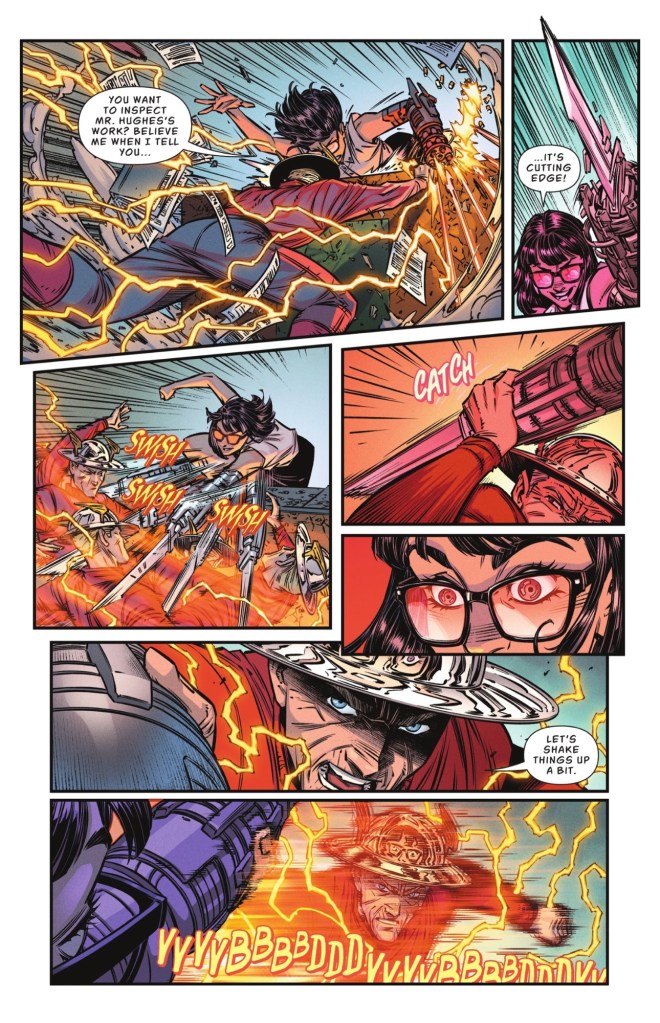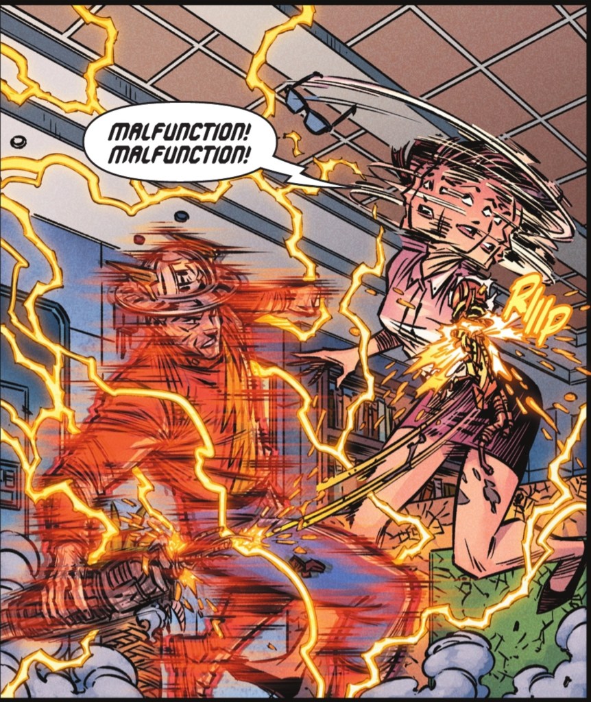 We start with The Flash and The Boom under attack by a STAR Labs secretary who has shown her true colours. And they’re shiny.