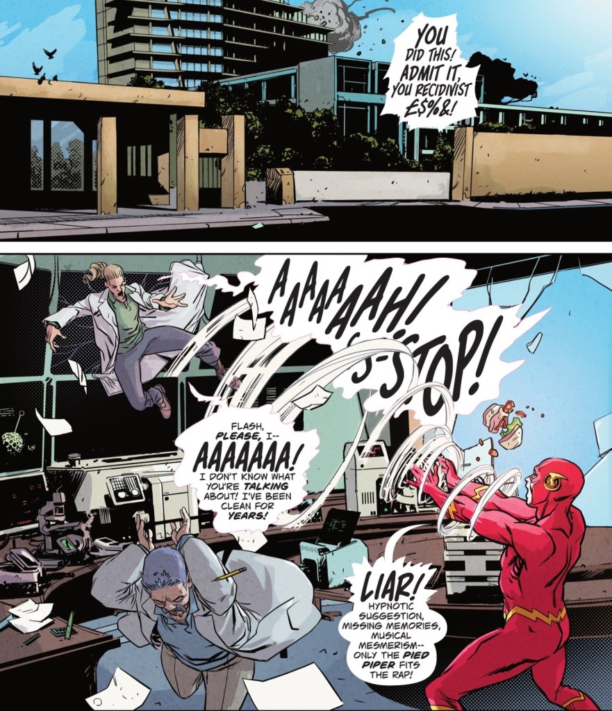 As for the weird tone of this…every few decades, Flash experiences a big, largely temporary, tonal shift. Maybe all comics do, but since Flash is the one I pay the most attention to, it’s the one that sticks out to me. When Ross Andru took over as editor in the 70s, Flash moved into harder crime stories for a bit. Drug smuggling, corrupt cops, Clockwork Orange-like experiments, the death of Iris… it was a far cry from the time-traveling dinosaur story that appeared the issue before.