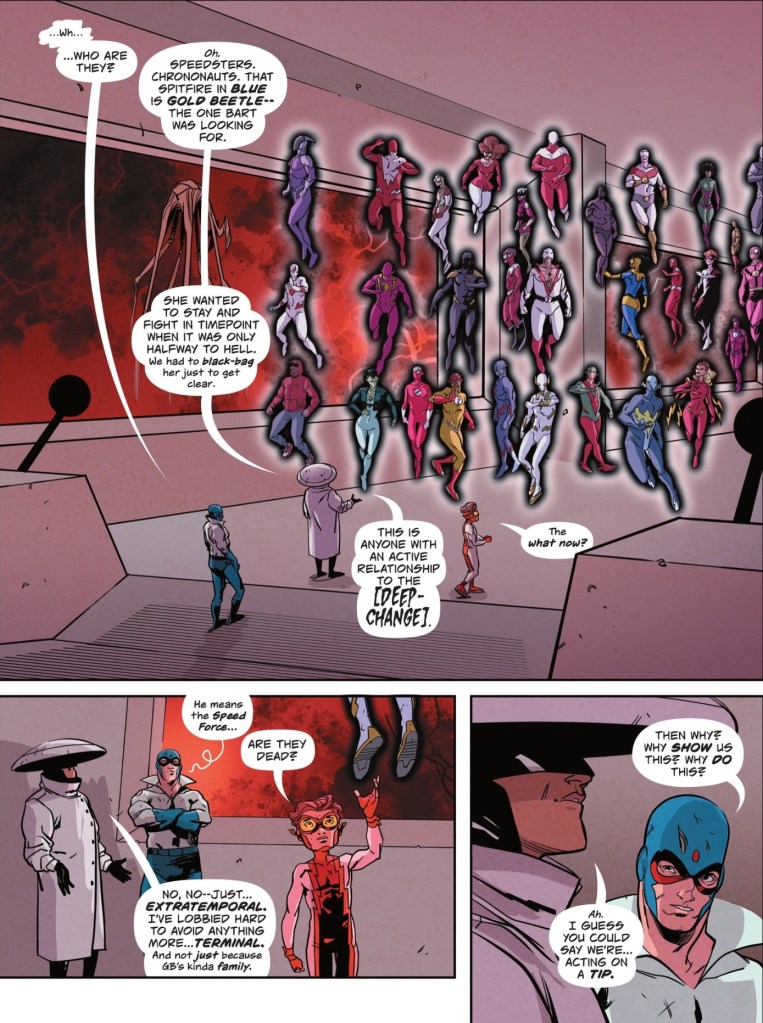 Impulse has a chance to shine as Inspector Pilgrim explains that the Speed Force and reality itself seems to be unravelling due to the existence of speedsters.