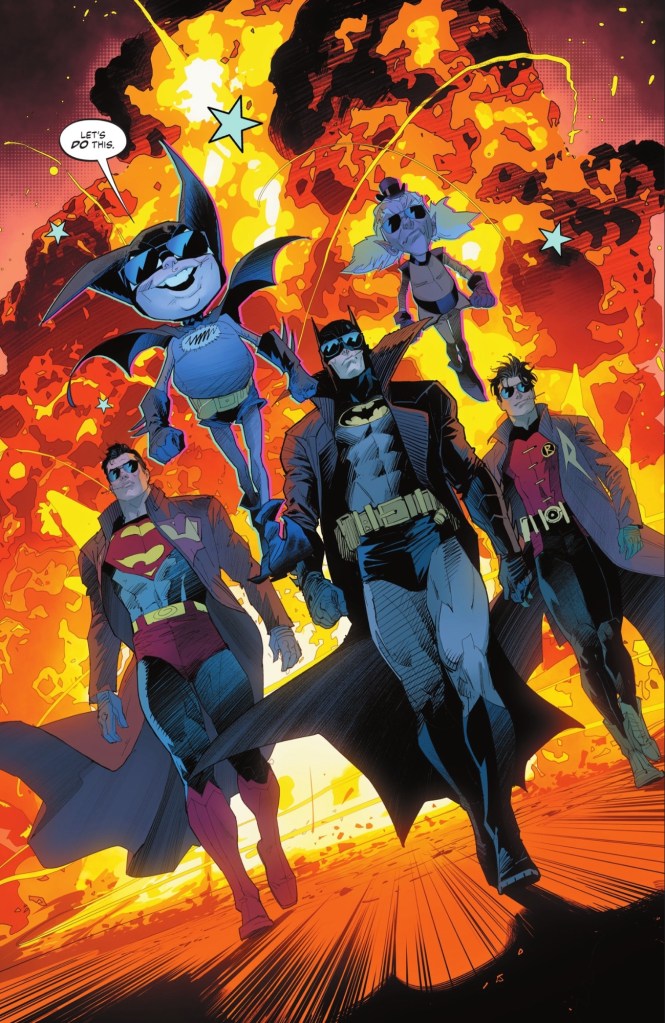 ‘Super-Robin’ is my favourite page of the issue, but every one of the 22 sides is as attractive as all get-out. The personality Mora puts into our stars is wonderful, with a particularly great close-up of Batman. Is Dan Mora winning awards? Dan Mora should be winning awards.