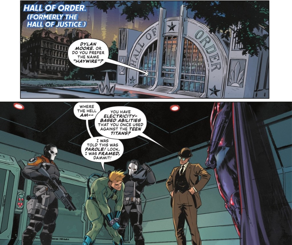 Haywire is informed that he’s now working for Amanda Waller – who has managed to buy up all the supervillain prisons – and helping her with a top secret project. All he has to do is direct his electricity powers at a machine, calling up all his reserves of energy.