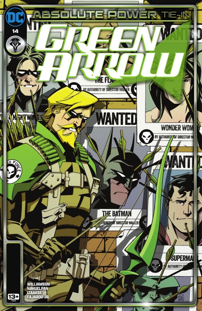 What is Oliver Queen up to? He’s publicly allied himself with Suicide Squad chief turned dictator Amanda Waller, helping her oppress his fellow superheroes. He’s not out hunting heroes – the souped up Amazo androids are doing that – but he is passing on their secrets and cataloguing the weapons ‘The Wall’ has stolen from them.