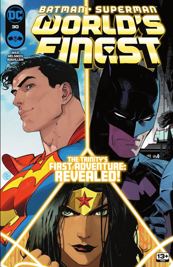 I suppose, as Detective Frank Drebin would say, ‘that’s not important right now’, the locked room mystery is just a maguffin to get our three spotlight heroes together. Yes, I realise Wonder Woman, Superman, Batman and Robin makes four, but this is a World’s Finest series, so of course Robin gets no cover or credits page mention. And that’s just wrong, as he provides not only the issue’s humour – there’s a great opening page nod to his famous first meeting with Diana in ‘For the Man Who Hs Everything’ – but also a splendid spot of cavalry gathering while The Trinity (ugh) do their Power of Three bit.