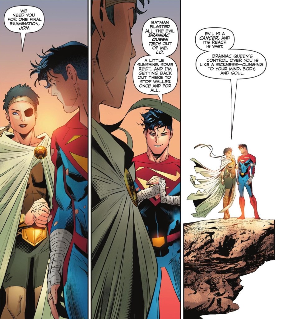 Amanda Waller used Jon Kent as a tool against other heroes in her war on metahumans. Infected by the Brainiac Queen, he hunted down his friends, but now he’s free, recovering on Paradise Island.