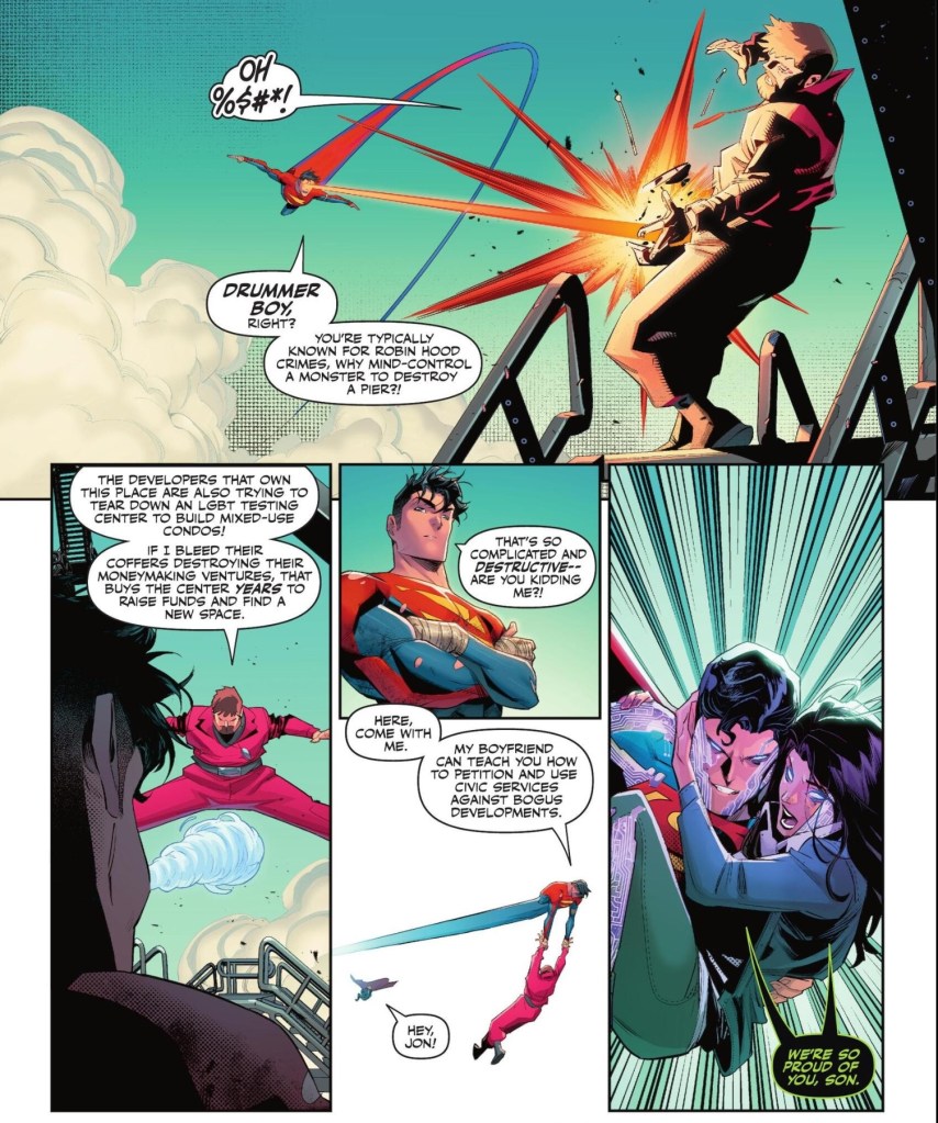 1. DC’s 101 on how ruin a character. Jon, for me, is still a kid and I don’t know who this chap is. Aging him (how many years???) didn’t do him any favours, and I never believed him being bisexual, as we barely got to see him have a crush. The changes made have been 100 percent detrimental for Jon: a character that showed so much promise on debut and was well-liked in that instant, not needing the warming over period many characters do. I was hoping with the removal of the Brainiac Queen’s virus, he would be made a kid again. He can’t replace Superman, lead the Teen Titans, or even genuinely inspire the Legion of Super-Heroes, but he can be Superboy. That role is clearly open. Great review as always!