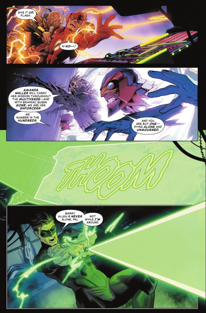 Meanwhile, Hal and Barry find themselves face to face with multiversal menaces desperate to join Waller’s crusade.