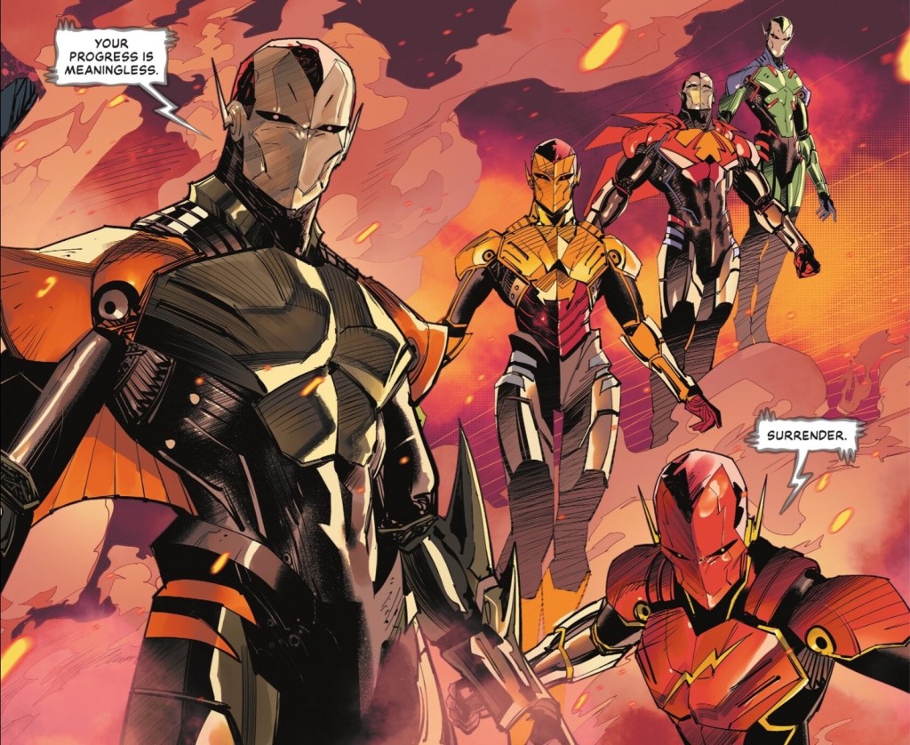 It was an entertaining event and got the job done laying the groundwork for Absolute DC/the new Justice League era. I just felt like Waid’s involvement would have elevated it beyond what it wound up being. But it’s also my fault because I really had convinced myself that issue 4 would offer some serious and exciting twists, like perhaps Darkseid manipulating Waller or this all being a scheme by Waller to take out Darkseid given the strong hints about his involvement in Absolute DC. I had also counted on Waid being aware of some fans’ frustration with Waller’s characterization these last several years and reconciling that Waller with Ostrander’s Waller, just because he is so good at things like that. But on the other hand, it isn’t unrealistic to think someone like Waller has changed/become more extreme, and that’s the story we wound up with. There just weren’t any surprised. The heroes rallied. The evil robots were destroyed. Ollie was a mole. Waller wound up being the villain. I’ve read a lot worse comics. I just was hoping for more. But like I said, maybe Waid will flesh out some things in Justice League…