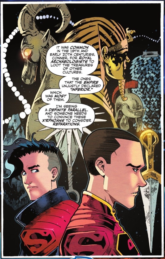 The only aspect of this story I don’t like is the subplot involving the Super-Man of China and Superboy being trapped in a space museum. It centres on an unsubtle, simplistic dig at the British Museum.