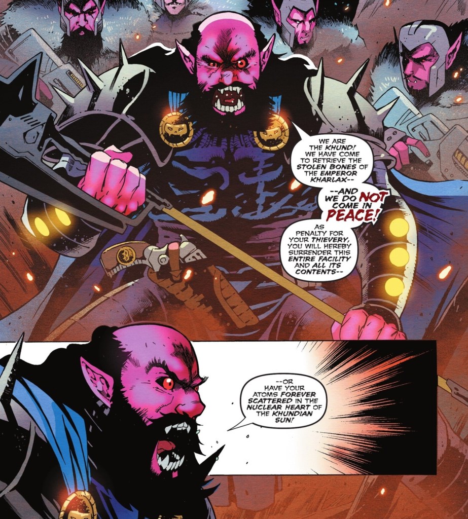 Kharlax, eh? That’s just one letter away from the warrior Kharlak, a Khund who showed up in Legion of Super-Heroes #287 pre-Crisis. Nods to the classic, classy Legion can’t help but make me happy.