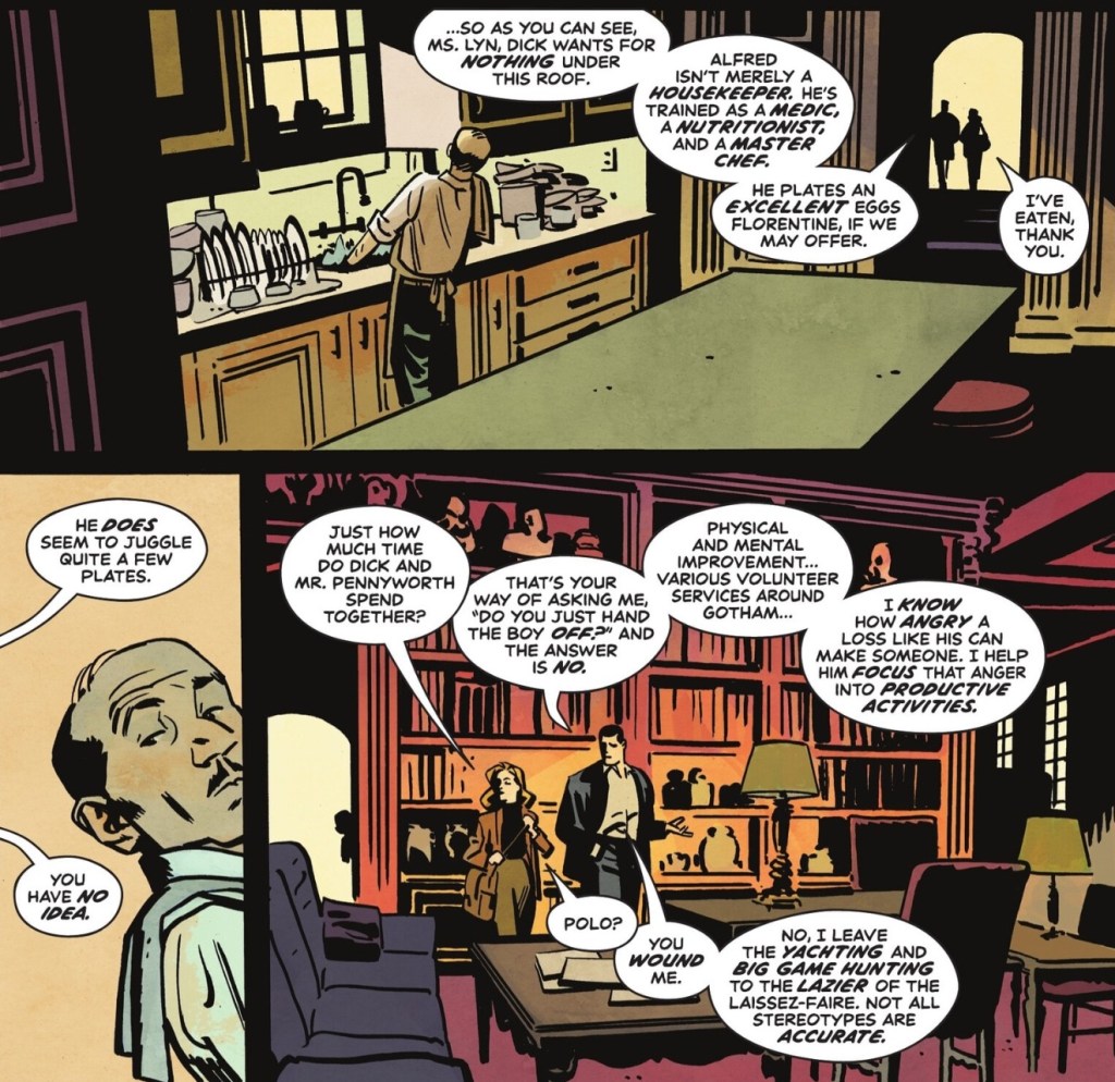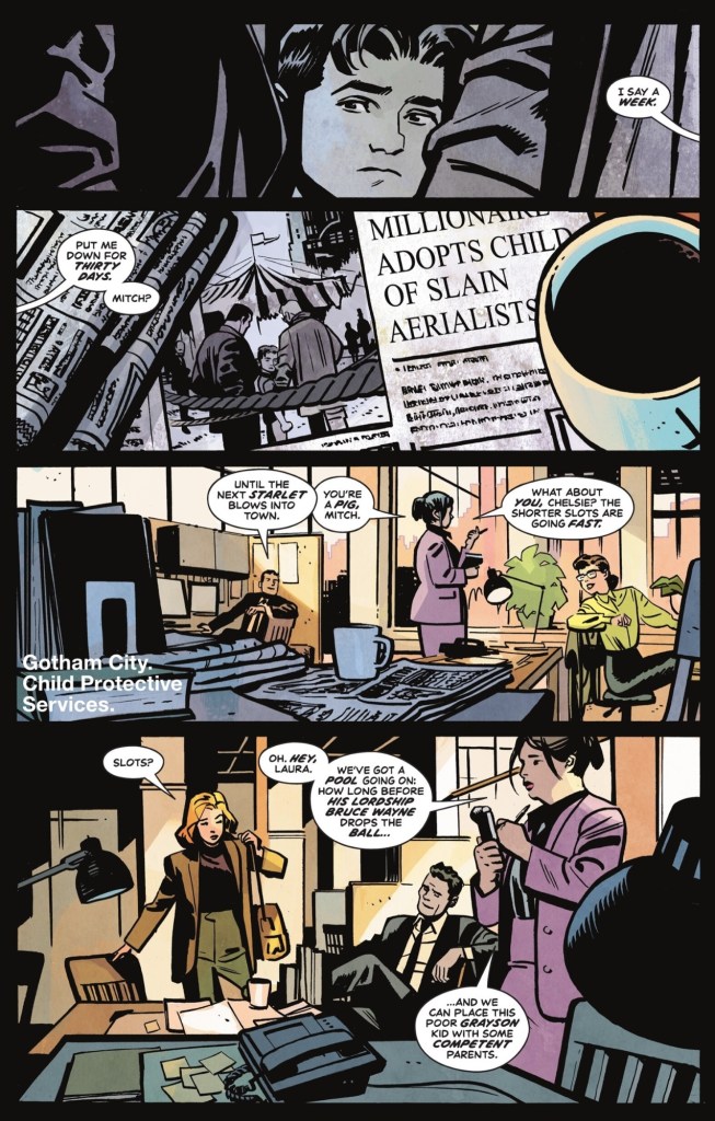 Loved this issue, and especially loved the cynicism of Gotham’s social services workers, and the introduction of Laura Lynn as a complication in Bruce & Dick’s lives. Like you, I hope she sticks around.