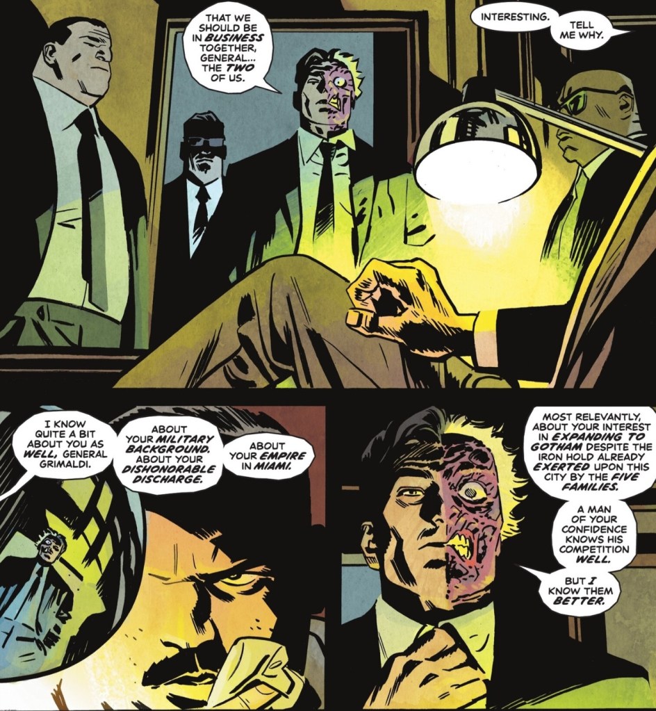 Later, in Gotham City, the newest would-be gang leader is visited by a man who already has a reputation.