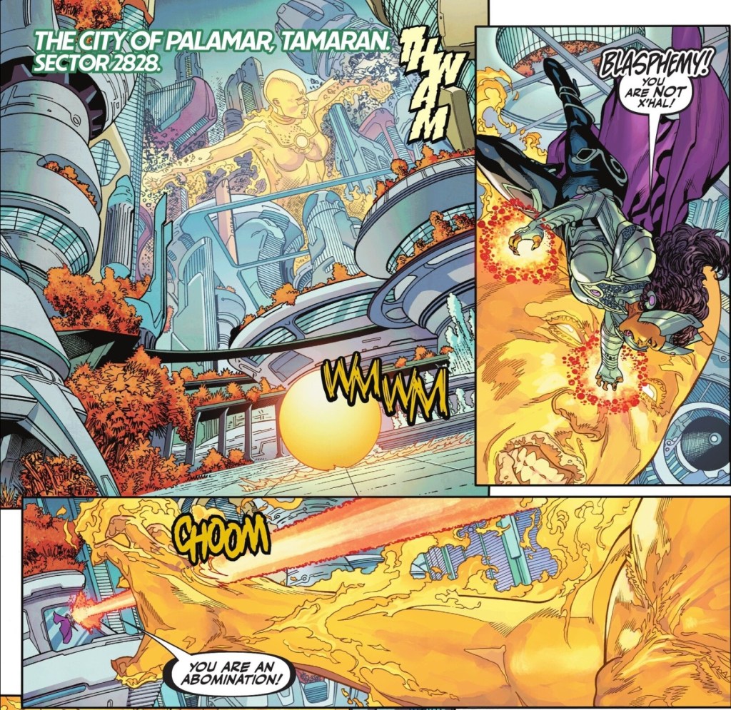 On Tamaran, another villain turned less-of-a-villain is fighting a massive fear construct in the shape of the deity X’hal.
