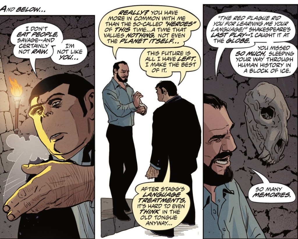 It helps that he’s partnered with illustrator Steve Lieber, whose clear, characterful storytelling brings the script to lovely life. The stylings aren’t showy, but they’re just a little to the left of the DC house style, perfect for the quirky world of Metamorpho. There’s an especially fun spread showing Rex and Urania’s progress through Vandal Savage’s secret base, it’s the sort of thing we should be more of, because only comics can pull it off.