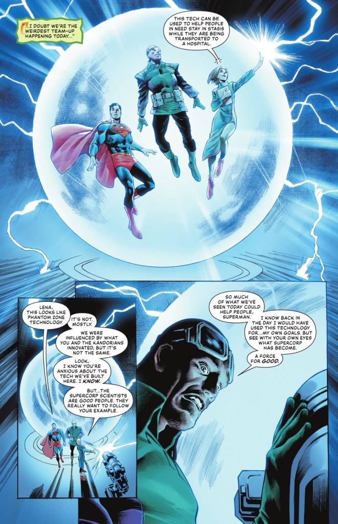 Back at the former Lexcorp, Superman continues to fail to be impressed by new tech supposedly inspired by him.