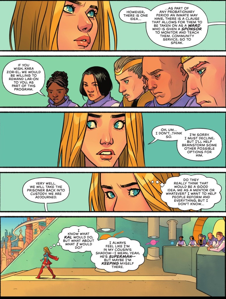 The amount of experience alluded to does make her feeling in Superman’s shadow unlikely, and slightly disappointing, but hopefully this first storyline will kick that idea right out of the cosmos.