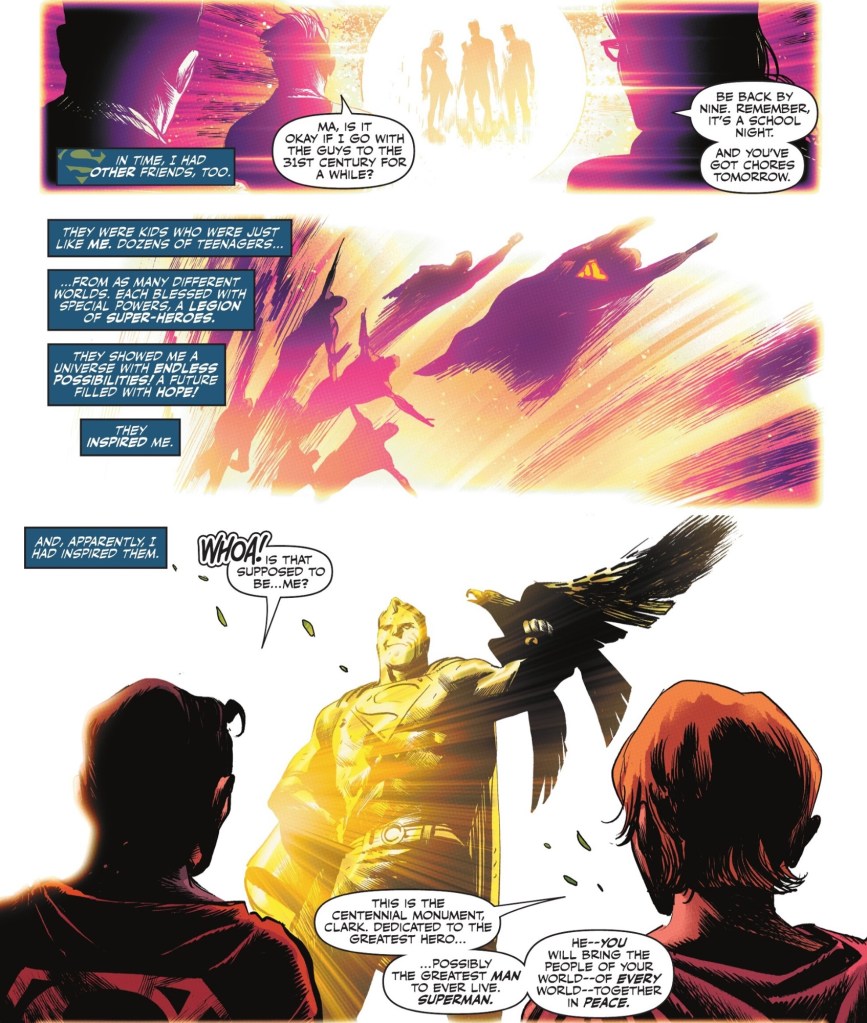 He also mentioned that the two present day Superman books would indeed synch up, I suppose they are not synching up at the moment because by the end, this book is three months ahead of the other one