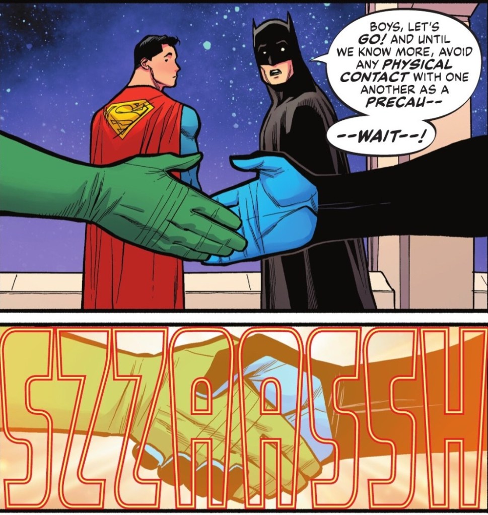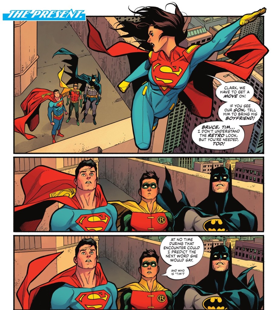 And that era’s Batman and Superman have joined Robin in 2025, in Metropolis, where they have a brief encounter with Lois Lane, current Superwoman.