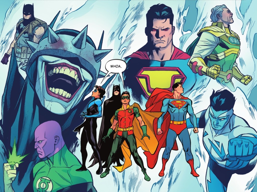 1. Was that Pariah in the montage next to Ultra Man? Points off for reminding me that the Batman Who Laughs ever existed. Ultra Man is beyond shallow with a fairly stupid way of gaining power and he’s better. I enjoyed the book overall, but I can’t explain even to myself why I’ve been vaguely dissatisfied with this book since Mora left. That’s part of it but it’s more and I’m blanking on what.