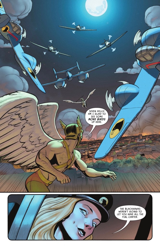 Oh, I do enjoy Lady Blackhawk… even if she hadn’t canonically debuted at this point. How about that page of planes? Guidry recently popped up in Action Comics and on the basis of these two assignments I hope DC finds a regular spot for him.