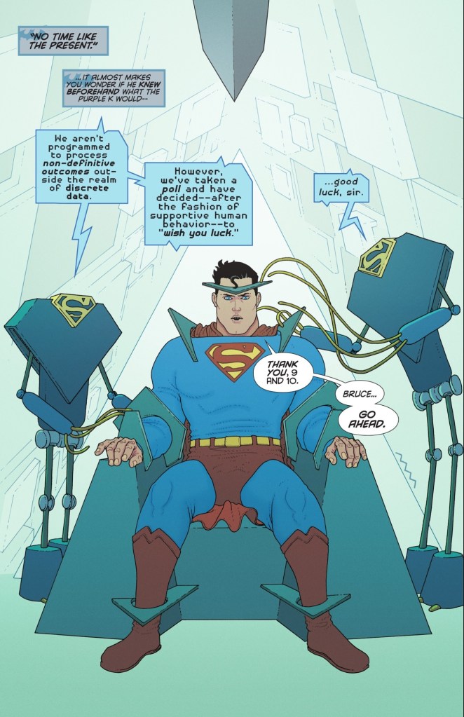 1. The creative team seems to be having the time of their lives doing this. The cleverness applied in the complication of the Kryptonite is well done, and I really liked that Luthor is on the case almost instantly. I do wonder why Batman is in this story. He doesn’t serve a singular function that Steel or Brainiac 5 couldn’t perform, and without getting broken ribs in the process. Great review as always.